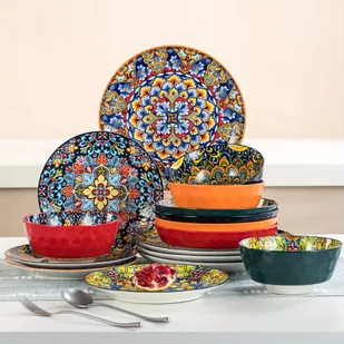 TEMU Zestawy obiadowe dla 4 osób, 16-częściowy zestaw naczyń obiadowych Simi, ręcznie robione elementy, kolorowa zastawa stołowa w stylu boho,