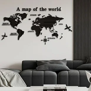 TEMU Zrób to Sam - Dekoracja Ścienna w Stylu z Akrylu "Mapa Świata" z Samolotem i Kompasem, Grubość 1mm, Samoprzylepne - Idealna do Klas, Biur,