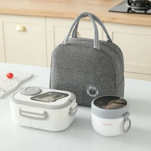 Zestaw 3-częściowy: Przenośna Torba Termiczna + Pudełko na + Kubek na Śniadanie z Owsianki, Składana Torba Termiczna z Folii Aluminiowej z Jednym