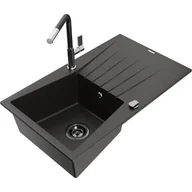 Mexen Matias zlewozmywak granitowy 1,5-komorowy z ociekaczem i baterią kuchenną Carla, czarny - 6502-77-670700-00