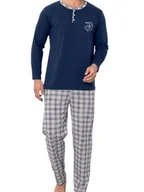 Piżama damska bawełniana granatowa z guziczkami i spodniami w kratkę XXL